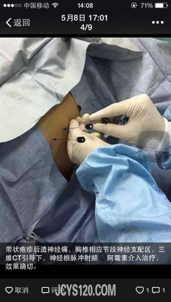 带状疱疹后遗的神经痛很顽固,影响病人生活质量,所以必须积极的去治疗,但是看楼主你的输液处方除了奥美拉唑可以缓解患者的反酸之外,其他的基本没有什么作用,带状疱疹后遗神经痛是一种复合性神经病理性疼痛,这种疼痛是带状疱疹侵袭期外周神经持续损伤的直接结果。在带状疱疹急性期可观察到从皮肤至脊髓的神经组织都会发生病理性损伤。按照惯例,将带状疱疹后遗神经痛定义为“至少在急性带状疱疹出疹后 90 天内持续发生额累及皮区的疼痛”。 那么一般的治疗原则是止痛、营养修复神经损伤,有证据支持应用三环类抗抑郁药(超说明书用药)、抗癫痫药物加巴喷丁和普瑞巴林(美国 FDA 认证)治疗带状疱疹后遗神经痛。至于输液的用药我个人认为没有必要,但是病人如果确要坚持输液的话,可以考虑给予甲钴安静滴。 另外因为最近接触的疼痛科的比较多,也发现有一种治疗方法效果不错,但是不是我们可以完成的,脉冲射频带状疱疹疼痛,就是这种: