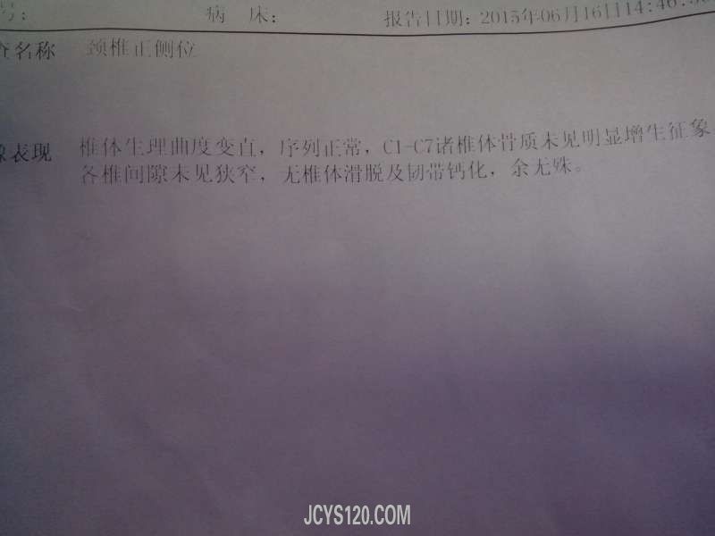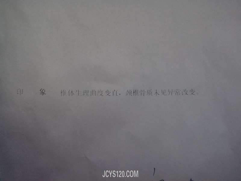 鄙人自己的小孩,女,15岁,老说颈椎不舒服,最近带她去市医院拍了一个X光片,情况如下: