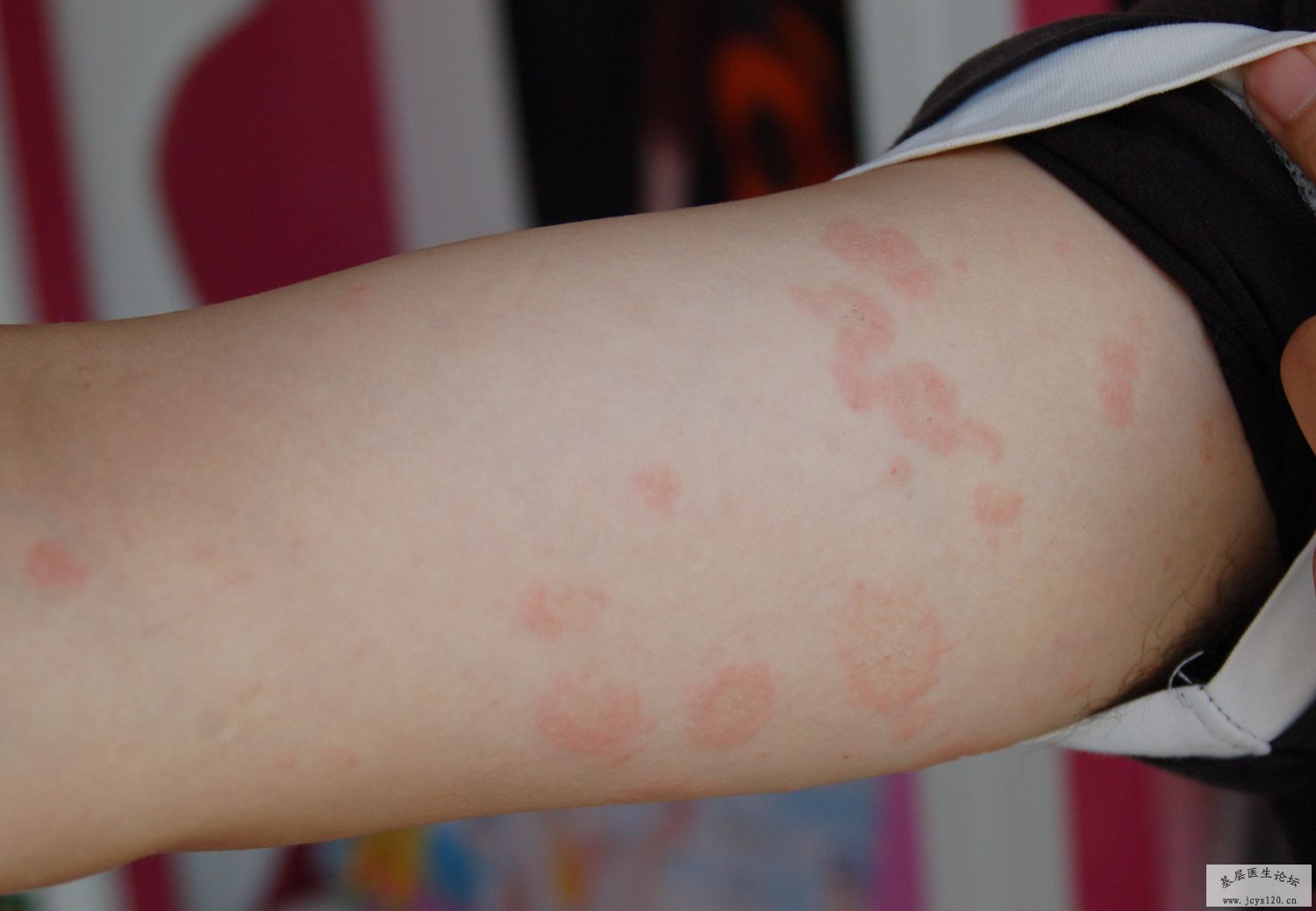 2004冬季大腿根部有一块红斑奇痒大概和鸡蛋大小,经常手抓,两个月后不了了之好了,07年夏季经常喝啤酒,腋下,大腿根部,腘窝,又大面积出现,大小不一,偶尔痒,后用派瑞松涂抹5—8次好转临床痊愈,也用过皮炎宁酊,再喝啤酒再次复发,而且更加严重,最近一月未喝酒,但一礼拜前又大面积出现,面积大的偶尔也痒。